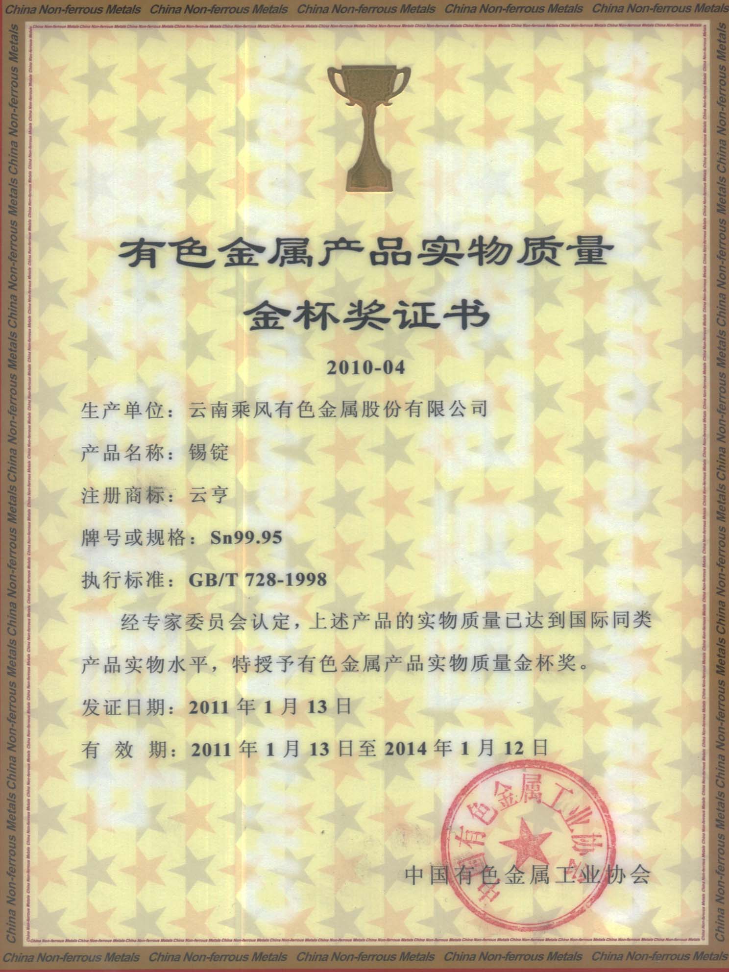 实物质量金杯奖